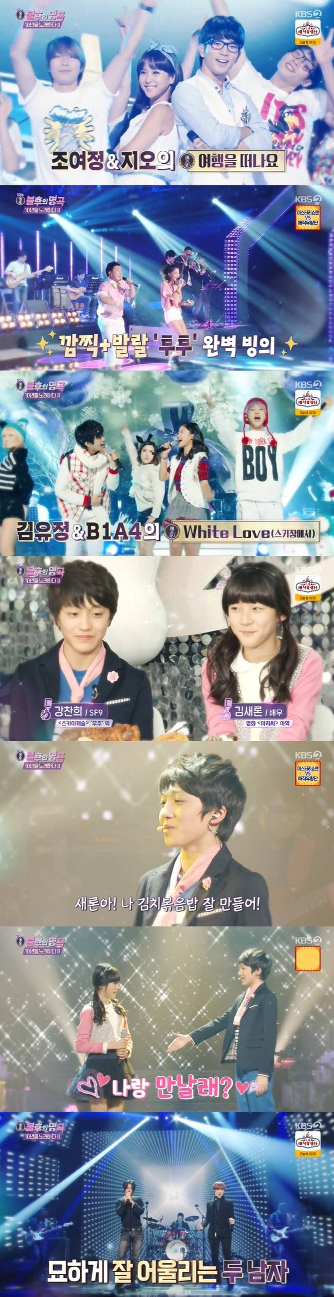 SF9 찬희와 김새론의 아역시절 모습도 공개 됐다. 2013년 변진섭 편에 출연한 찬희와 김새론은 뮤지컬 배우 김다현과 함께 ‘희망사항’을 불렀다. 무대 중 김다현의 응원 속에 찬희는 “새론아. 나 김치 볶음밥 잘 만들어 나랑 만날래?”라고 수줍게 고백했고, 김새론은 찬희의 손을 잡으며 미소를 자아냈다.