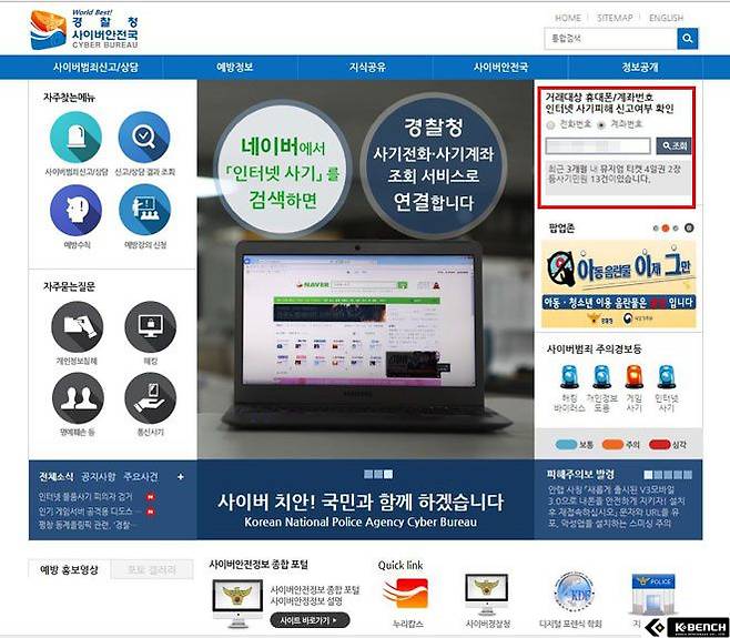 ▲ 사기꾼의 민원 신고 정보를 확인할 수 있는 '경찰청 사이버안전국'