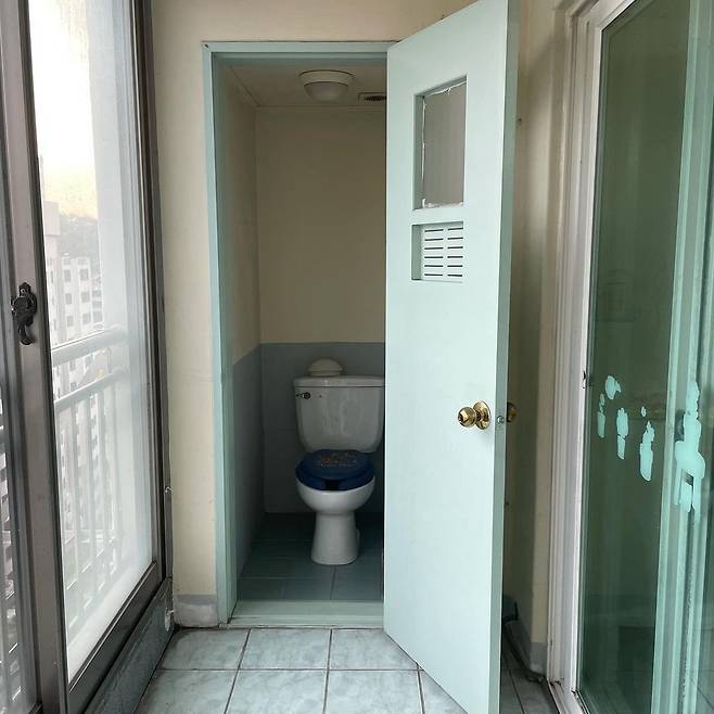 그리고 이사 올 당시 가장 신기했던 공간이 하나 있었는데, 거실 베란다 옆에 있던 조그마한 화장실입니다. 현재는 이 공간을 철거하고 작은 펜트리 공간으로 사용하고 있어요.