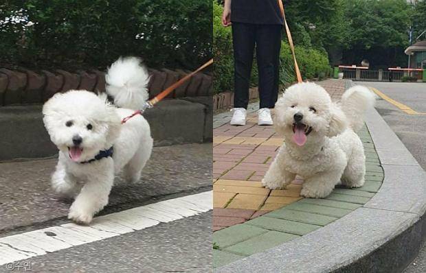 생각보다 길어진 장마에 쉬지 않고 비가 쏟아져 최근 산책을 제대로 못 했다는 강아지 '강냉이'