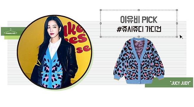 이유비는 블루&핑크 컬러 배색이 돋보이는