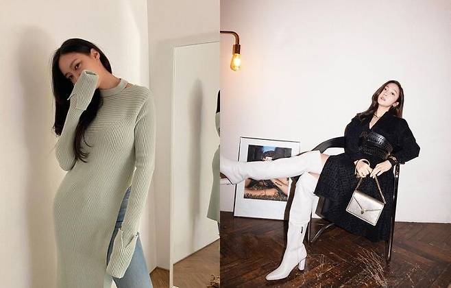 라인 스튜디오 원의 블랙 원피스로 레이어드 코디를 한 김소은 !
