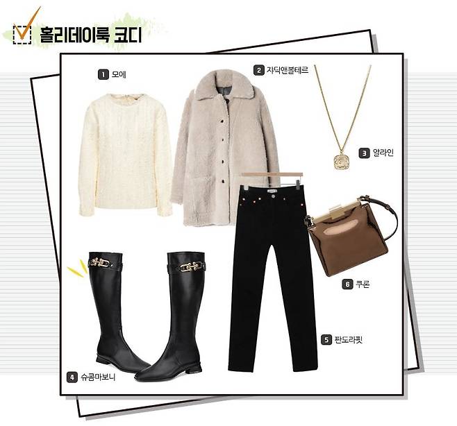 다양한 부츠 아이템도 연말룩에 빠질 수 없죠 !