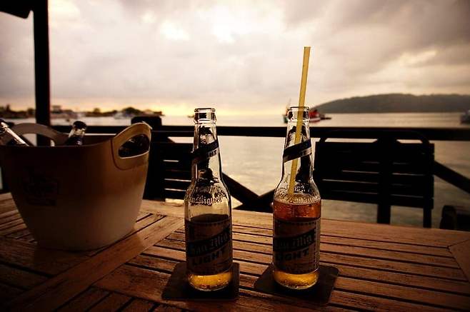 탄중아루 해변을 조금 더 특별하게 즐기고 싶다면 샹그릴라 탄중아루 선셋바를 이용해보도록 하자. 샹그릴라 탄중아루 리조트에 위치한 선셋 명소로 잘 알려진 선셋바. 예약을 하지 않으면 자리를 잡을 수 없을 정도로 인기다.