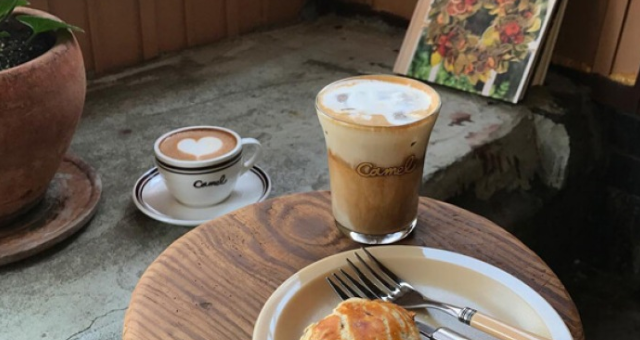 이곳의 대표 메뉴는 고소한 라떼 위에 풍성한 커품을 올린 카멜커피. 대표 메뉴답게 테이블마다 하나씩 주문하는 이 메뉴는 플랫화이트에 카멜만의 노하우를 담아 만든 커피로, 아이스크림처럼 시원한 크림이 일품이다. 커피류와 함께 한편에 베이커리도 준비되어 있으며, 특히 스콘이 맛있기로 유명해 이를 사기 위해 방문하는 손님들도 많다. 비교적 가격도 저렴한 편이며, 매일 나오는 베이커리는 인스타를 통해 공지하니 미리 참고하는 것이 좋다.