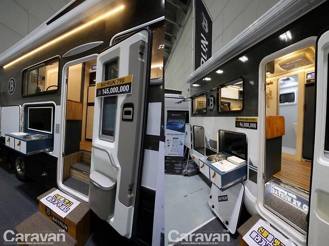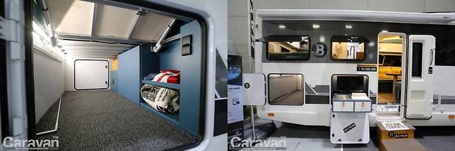 베이런 그룹의 패밀리룩을 그대로 이어가고 있는 두 대의 캠핑카는 세부적인 사진만 본다면 구분하기 어려울 정도로 닮아 있다. 실제적인 사이즈와 공간은 확연히 다르지만 서로의 장단점은 확연히 구분되고 있다.