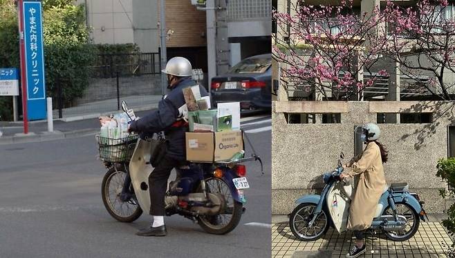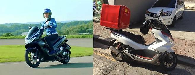 왼쪽 바이크는 PCX라는 모델이고 오른쪽은 슈퍼커브 입니다. PCX는 자동차로 치면 세단 처럼 승용으로 만들어진 바이크이고, 슈퍼커브는 자동차로 보면 트럭처럼 물건을 나르는 상용으로 만들어진 바이크 입니다. 신기하게도 우리나라에서는 승용차처럼 만든 모델을 배달을 하는 상용으로 쓰고 있고, 화물 운송 용도로 만든 모델을 승용으로 많이 쓰고 있는 상황입니다. 더 쉽게 말하면 그랜저를 화물용으로 타고, 포터를 자가용으로 타고 다니는 겁니다.