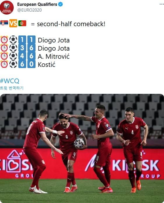 ▲ 세르비아, 포르투갈전 미트로비치 골로 2-2 무승부