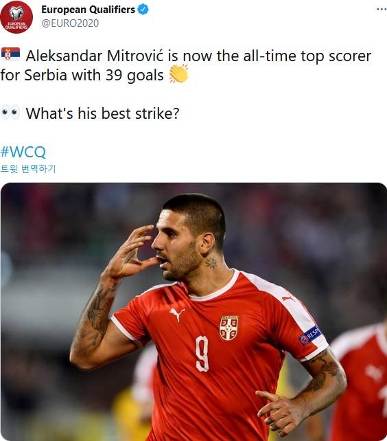 ▲ 미트로비치, A매치 39골로 세르비아 대표팀 역대 최다 골 신기록