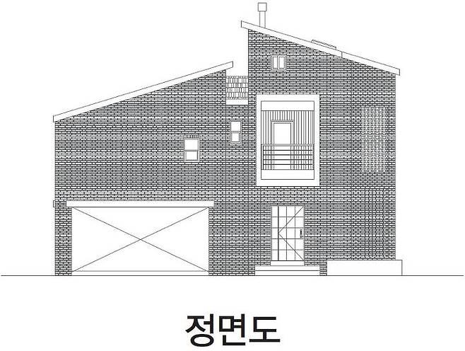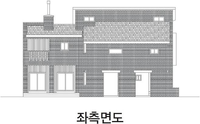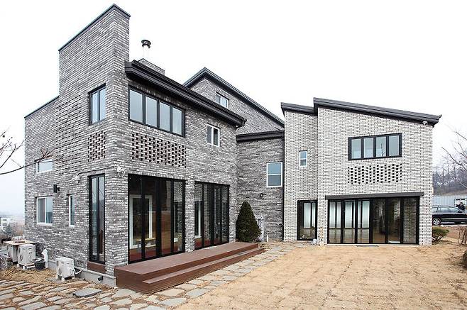 건축주는 설계 담당자에게 ‘조적 느낌이 드는 목조주택, 실내 차고를 갖춘 주택, 단열성이 높은 주택’을 요구했다. 북서쪽보다 남동쪽이 넓은 사다리꼴 모양의 대지와 주변 환경을 고려해 주 도로를 등지고 마당을 품은 ‘L’자형 2개의 매스로 주택을 배치했다.