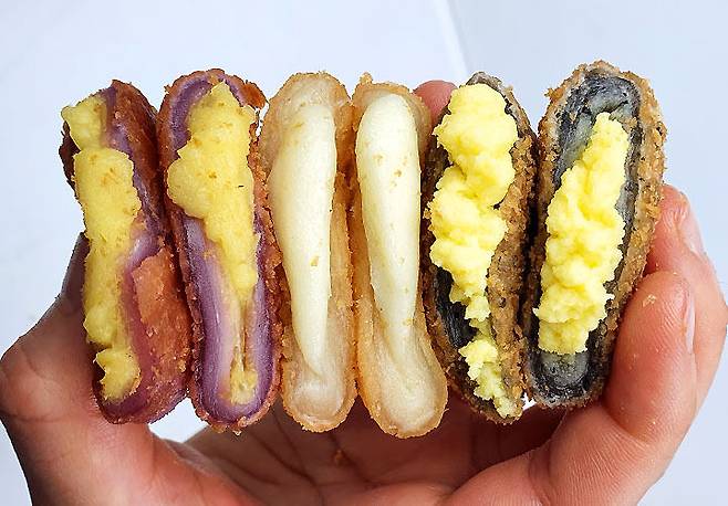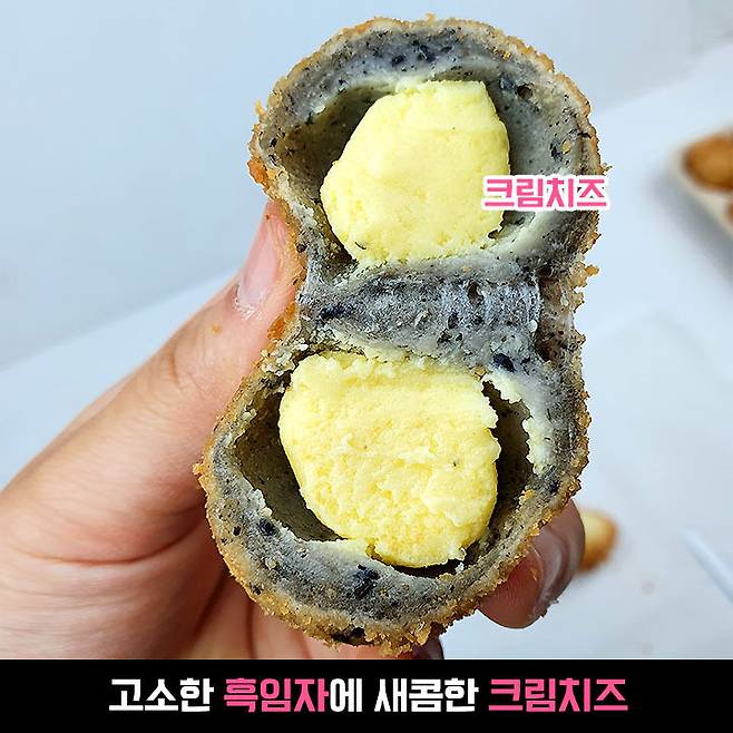 흑임자는 살짝 새콤한 맛이 느껴지는 크림치즈가 들어있어요. 처음에 색상이 노랗길래 커스터드 크림인 줄 알았는데 아니더라고요ㅎㅎ
