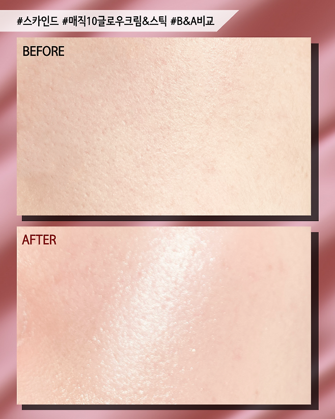 매직 글로우 피부가 한눈에 비교되죠?