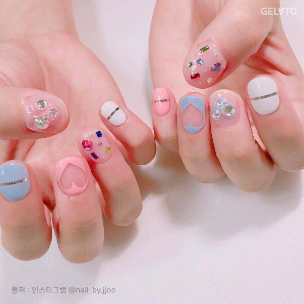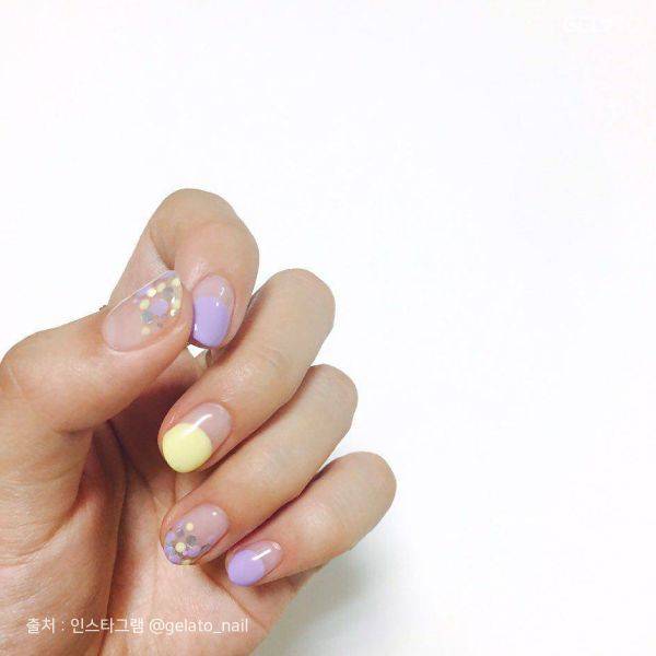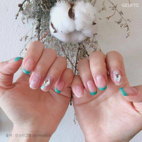 원색의 컬러보다는 화이트가 가미된 파스텔 계열의 민트색이나 연두색으로 청순청순한 느낌의 네일 추천합니당♥