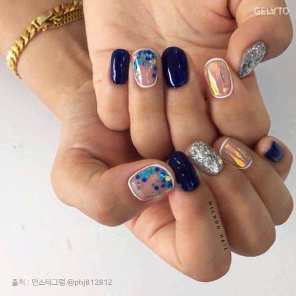 깔끔하게 풀콧으로 발라도 예쁘지만 각종 글리터와 유리필름과 함께 매치하면 더 예쁜 네이비...♥