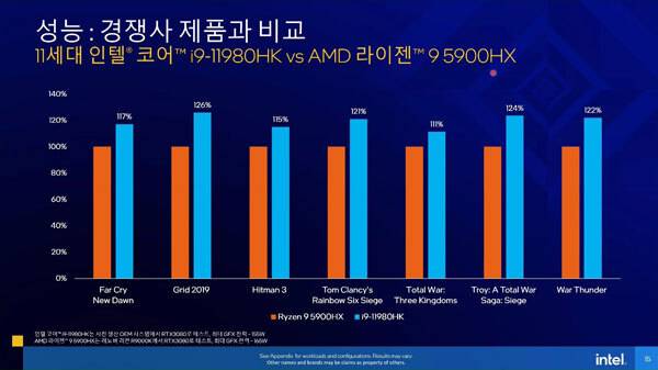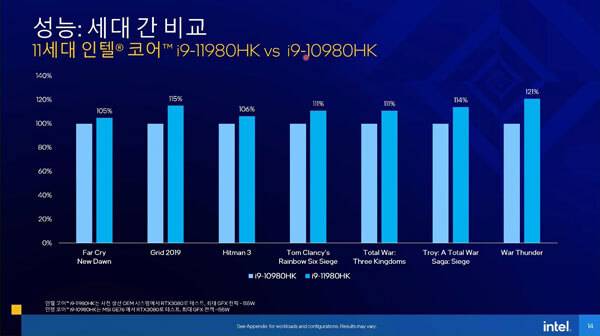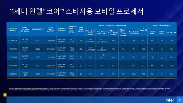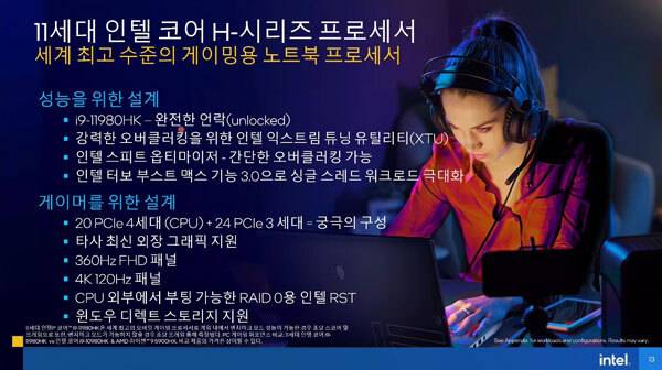 인텔 코리아는 오늘 온라인 브리핑을 통해 노트북용 고성능 게이밍 CPU인 타이거 레이크-H((Tiger Lake-H)) 시리즈의 출시를 공식 발표하였다.
