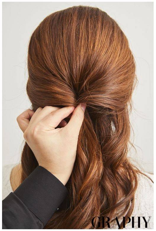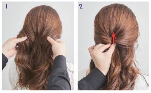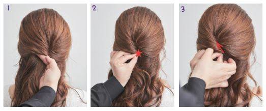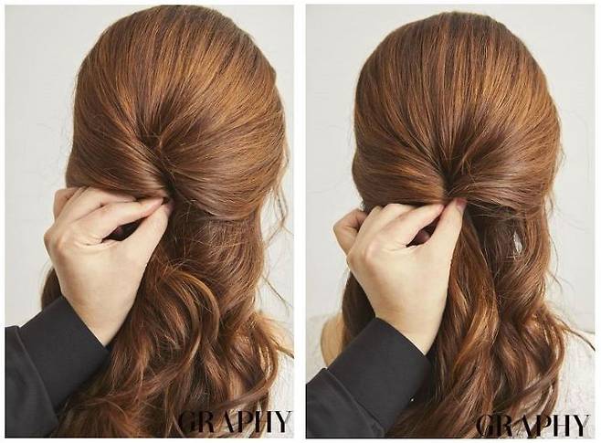 핀을 꽂기 전에 모발을 잡고 있는 손을 살짝 위로 올려주고 핀을 꽂으면 볼륨을 살려줄 수 있다.