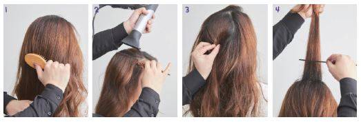 ① 모발을 전체적으로 빗질해 엉킨 머리카락을 풀어준다.