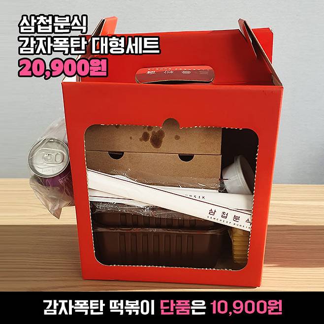 떡볶이 단품 가격은 10,900원으로 종류는 일반/로제/크림 3가지! 밥심은 토핑과 사이드, 음료까지 추가한 대형세트로 주문해 20,900원이 들었습니다! 다른 배달 떡볶이들이랑 비슷한 가격대인 것 같아요.