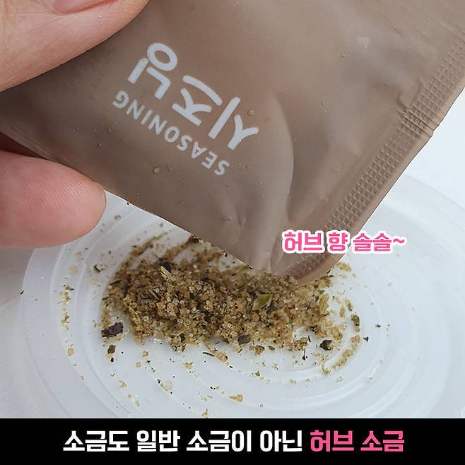 같이 딸려오는 소금 포장지에 시즈닝이라고 적혀있길래 너무 거하게 적어놓으신 거 아닌가 했는데, 일반 소금이 아니라 허브 소금이었어요! 시즈닝 인정합니다 bb
