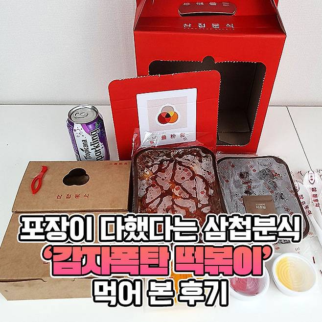 오늘의 주인공은 SNS에서 한 번쯤은 보셨을 떡볶이입니다~ 바로, 범상치 않은 포장으로 유명해진 삼첩분식! 독특한 포장으로 소문난 프라닭 같다 하여 떡볶이 계의 프라닭이라는 별명이 있더라고요ㅋㅋ 1첩-떡볶이, 2첩- 토핑, 3첩-사이드로 메뉴를 나눠 판매한다는 독특한 콘셉트! 과연 비주얼과 맛 두 마리의 토끼를 전부 잡았을지 같이 확인해보실까요~?