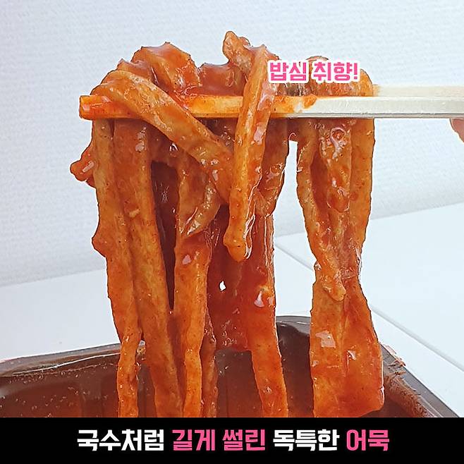 떡볶이에 빠질 수 없는 또 하나의 주인공 어묵~ 일반 떡볶이와 다르게 국수처럼 기다랗게 썰려있는데, 떡+어묵을 한입으로 생각하는 밥심에게는 떡과 같이 잡기가 편해서 너무 좋았어요!
