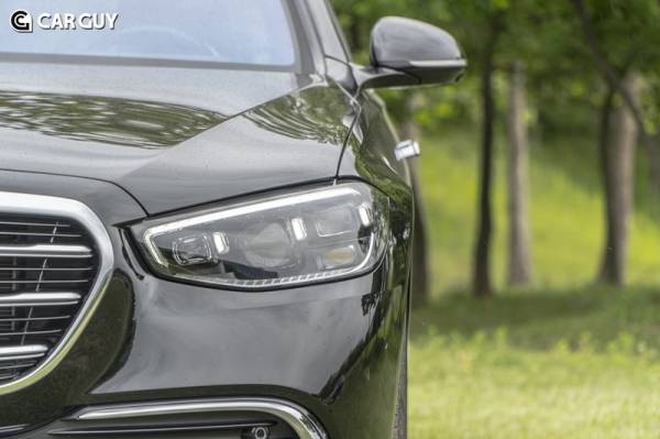시승을 마치고 외관을 살폈다. 전면부는 신형 E클래스 영향을 받은 듯 가로로 뻗은 헤드램프와 크롬으로 두른 큼지막한 그릴이 자리한다. 삼각별 로고는 보닛 정중앙에 당당하게 자리를 잡았다. 헤드램프는 화려하다. 무려 130만개 이상의 픽셀로 이루어진 프로젝션 모듈과 84개의 고성능 멀티빔 LED가 자리한다. 개별 픽셀의 밝기를 조절해 최적의 주행환경을 완성한다. 시동을 켜면 헤드램프가 춤을 추듯 움직인다. 운전자의 시선을 사로잡는 쇼다.