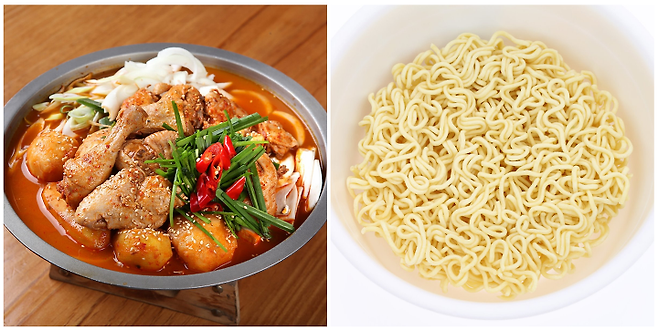 닭볶음탕과 컵라면은 의외의 만남이기보다 발상의 전환으로 탄생한 조합이다. TV예능 '전지적참견시점'에서 이영자가 닭볶음탕을 맛있게 먹는 비법으로 컵라면 사리를 넣는 모습이 방영되면서 큰 화제를 모았다. 뚜껑을 열고 끓이기 때문에 일반 면보다 얇은 컵라면 사리를 넣어야 면이 탱탱하고 꼬들꼬들한 식감이 살아있어 더욱 맛있게 즐길 수 있다.