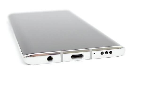 아래쪽 프레임에는 USB 타입C 포트 좌우로 절연선이 있으며, 3.5mm 이어폰 잭과 스피커, 마이크 구멍이 있다.
