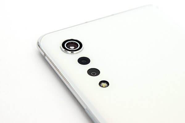 후면은 굉장히 미니멀하면서 세련된 느낌이다. 우리가 살펴본 모델은 오로라 화이트 색상인데, 후면 아래쪽에 있는 LG 로고까지 화이트 색상으로 되어있어서 후면 전체가 카메라 이외에는 아무 표시도 없는 것처럼 느껴진다.