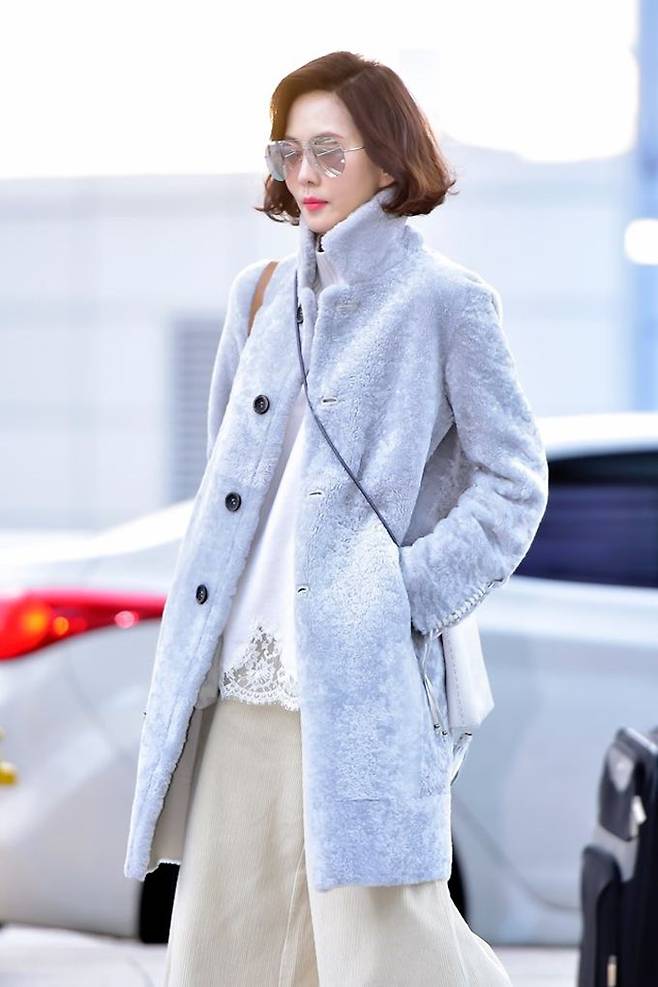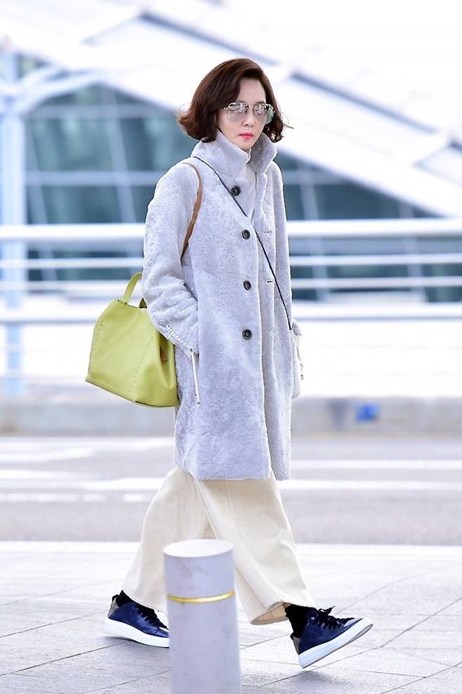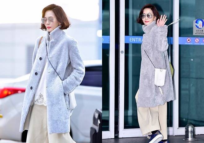 이날 김남주는 편안하면서도 엣지있는 공항패션을 연출해 시선을 사로잡았다. 세련된 컬러감이 돋보이는 무스탕과 페미닌한 레이스가 포인트인 화이트 니트에 베이지색 코듀로이 와이드 팬츠를 매치하는 센스를 발휘했다.