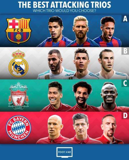 대부분이 바르사와 레알 트리오를 선택했고, 극소수만이 리버풀과 뮌헨 공격진을 지지했다.