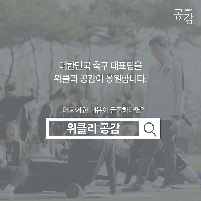 승리의 여부를 떠나, 꿈을 향해 최선을 다하는 폴란드 월드컵 대한민국 축구 대표팀을 위클리 공감이 함께 응원합니다. 대한민국, 파이팅!