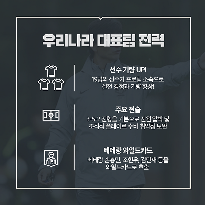 여기에 김세윤(대전 시티즌), 고재현(대구 FC), 박태준(성남 FC) 등 국내파가 균형을 잡아줄 것으로 보이고 있습니다.