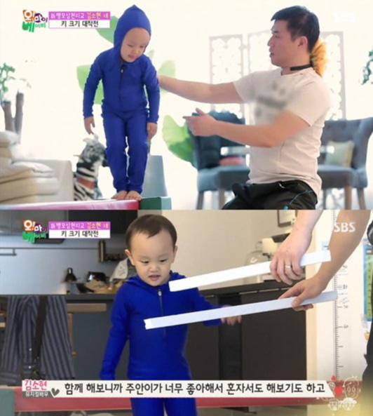 당시 또래보다 조금 작은 주안은 파란색 운동복을 입고 키 크기 운동 시간도 가졌었는데