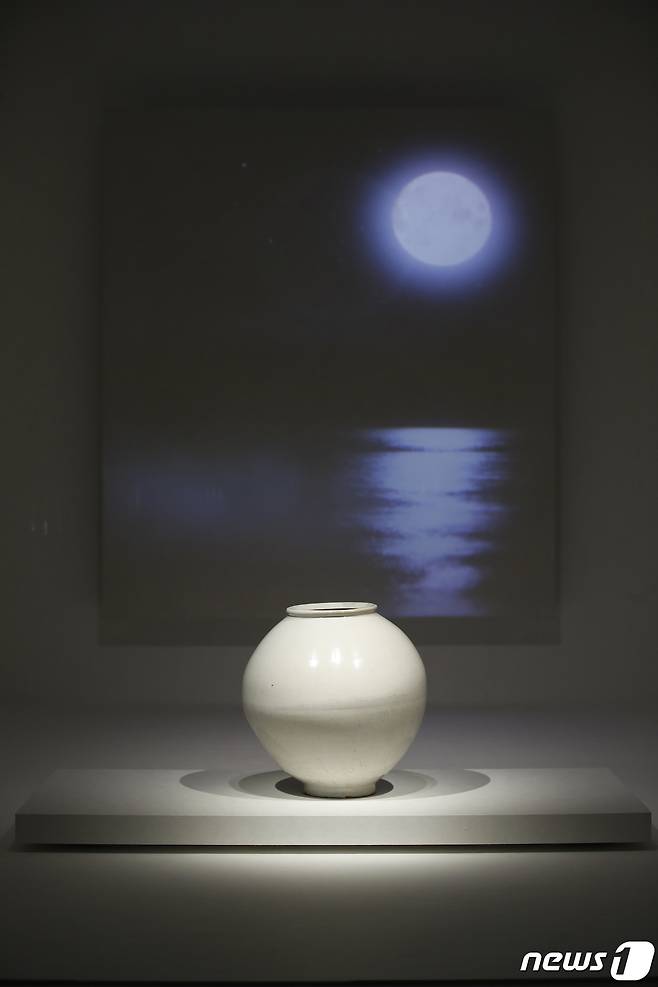 (서울=뉴스1) 권현진 기자 = 18일 용산구 국립중앙박물관 '분청사기·백자실'에 백자 달항아리가 전시돼 있다.