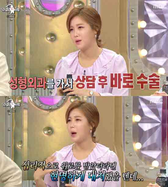 또한 솔비는 "데뷔 초 과도한 스케줄로 성형수술 상담을 받자마자 수술을 받고 생방송에 출연했다"며 "제정신이 아니었다. 성형 수술 전에 정신 감정을 받아야 한다고 생각한다. 위로를 받았다면 안했을 것"이라고 털어놨다. 또한 비혼모로 아기를 낳은 사유리를 보면서 "나도 난자를 얼리려고 상담을 받았다"며 "하지만 6개월간 금주를 하라고 해서 안하기로 했다"고 쿨하게 말해 웃음을 안겼다.
