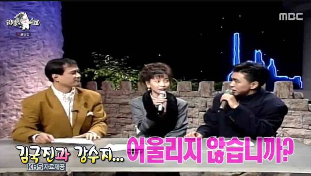 이날 김국진은 "사실 저 송승헌 씨 MC볼때 가요톱10 출연했다"고 털어놨다. 제작진은 당시 화면을 공개했고 20대 시절의 김국진이 강수지와 함께 등장한 것. 당시 방송에서 김국진은 송승헌에게 "김국진과 강수지, 어울리지 않습니까?"라고 말하며 "송승헌 씨 주례좀 서주세요"라고 말하며 청혼 너스레로 호감을 드러내 놀라움을 안겼다.