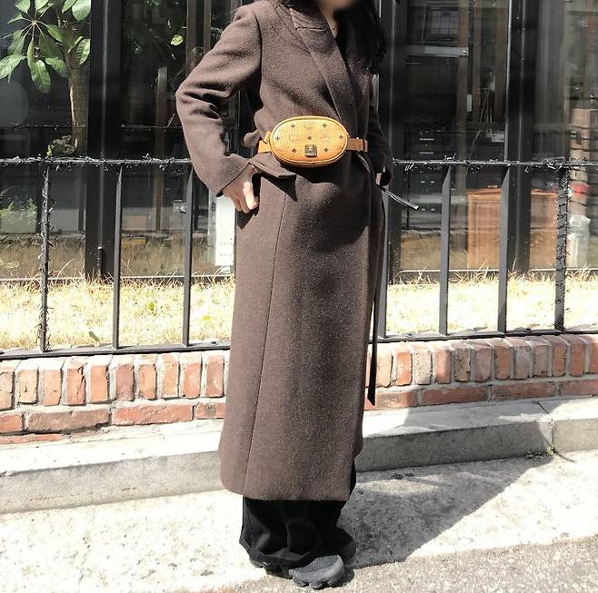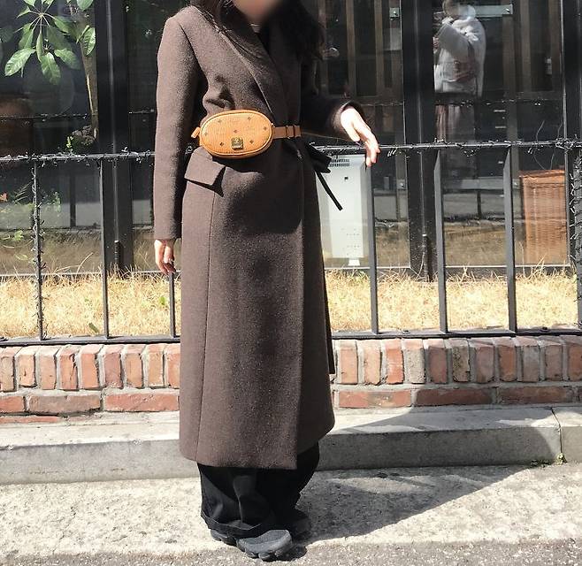 살짝 쌀쌀했던 날씨에 코트와 함께 착용한 벨트백은 그야말로