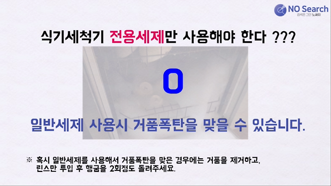 식기세척기에는 일반세제는 NO! 전용세제만 사용해야 겠네요.