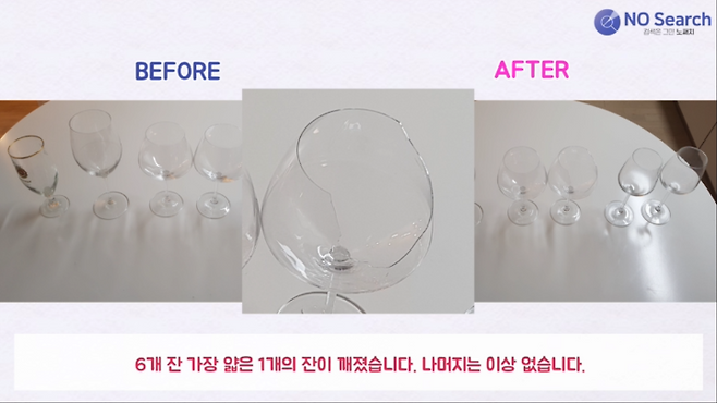 여섯번째, 얇은 와인잔을 넣으면 깨질까요?