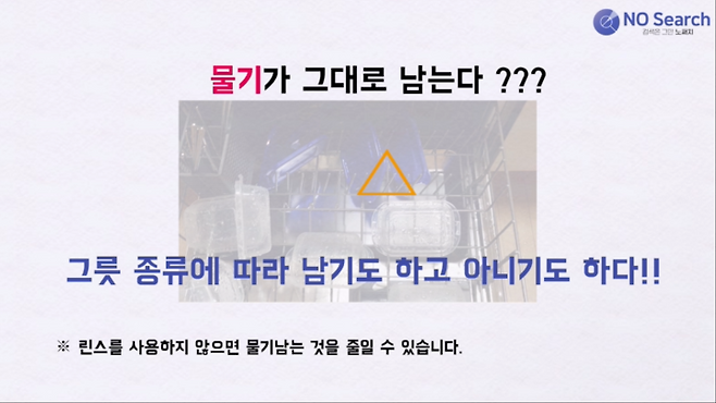 식기세척기 투입 전 애벌세척은 꼭 해야겠네요.
