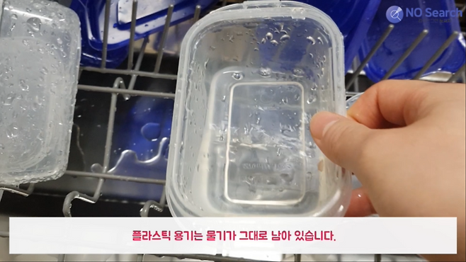 반면에 플라스틱 그릇은 물기가 그대로 남아있습니다.