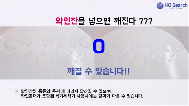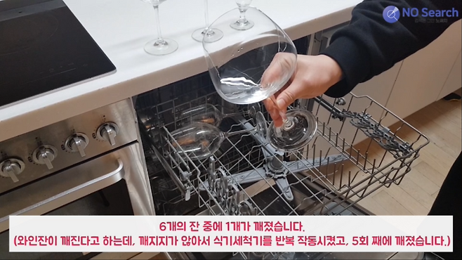 와인잔을 식기세척기에 넣으면 깨질 수도 있습니다.