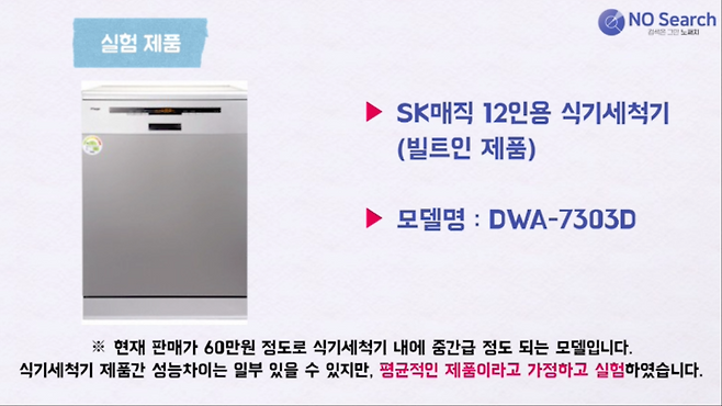 SK매직 12인용 모델로 실험하였고, 평균적인 제품으로 가정하였습니다.