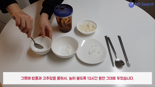 밥풀과 고추장을 묻혀서 눌어 붙도록 12시간 동안 두었습니다.