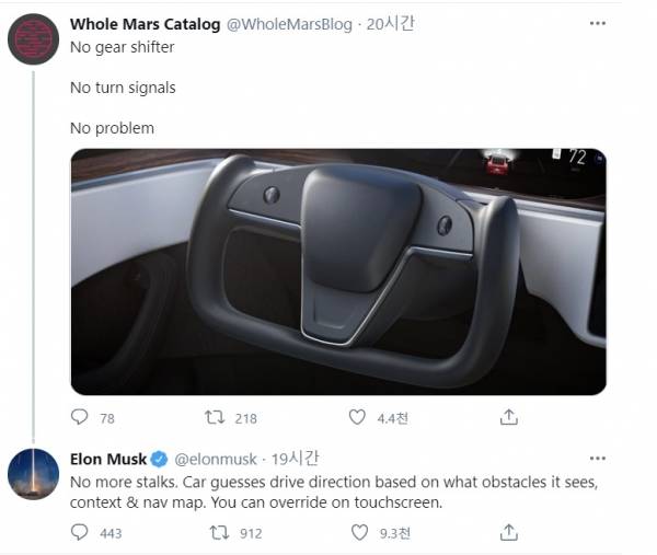 테슬라가 부분변경을 거친 테슬라 모델S와 모델X를 공개했다. 기존에 세로로 배치했던 17인치 디스플레이를 가로로 돌린 것은 물론 새로운 디자인의 스티어링휠을 적용해 소비자의 이목을 끌었다. 새로운 스티어링휠이 적용된 실내에서는 기존에 사용하던 칼럼식 기어 노브는 물론 별도의 변속 장치를 찾아 볼 수 없다.