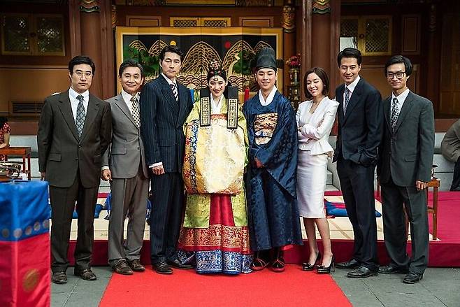 -특히 극 중 전통혼례 신부화장과 화려한 노란 재킷을 입은 모습을 보고 정우성과 조인성 등 출연진이 너무 예쁘고 귀엽다는 반응을 보였다. 특히나 뻔뻔하게 연기한 모습에서 평소 보지 못한 매력을 봐서 더 재미있었다고…