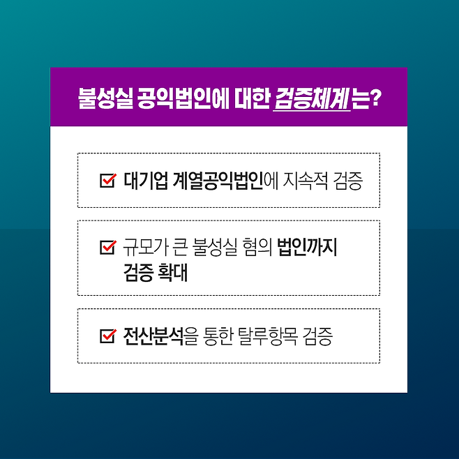 신고지원 서비스는 강화하고! 불성실 공익법인은 엄정한 검증을 실시합니다!