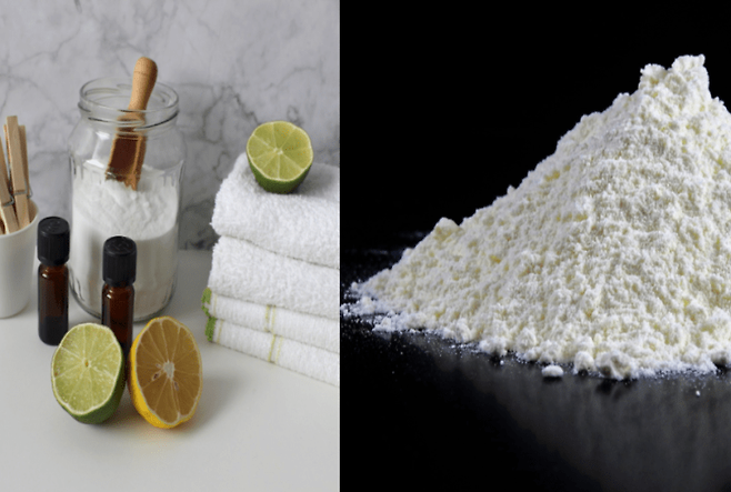 베이킹소다와 물을 3:1 비율로 섞은 후 따뜻한 물에 푼다. 이후 밀폐용기에 담아 1-2시간 정도 담아둔다.