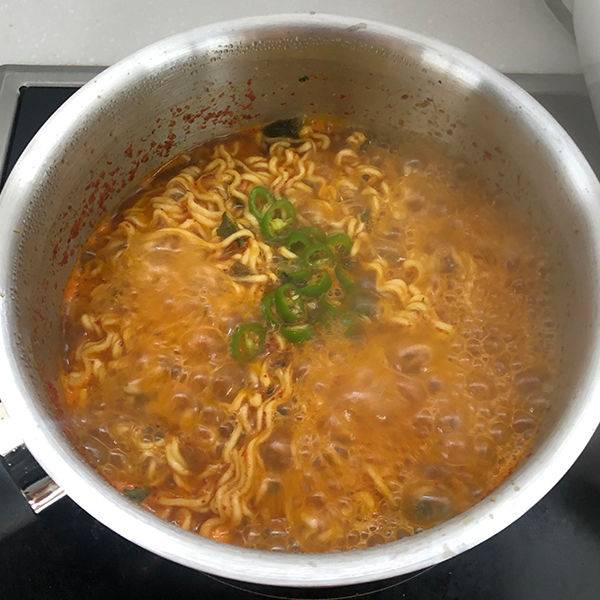 일단 끓는 물에 스프와 건더기를 일반 라면 끓이듯이